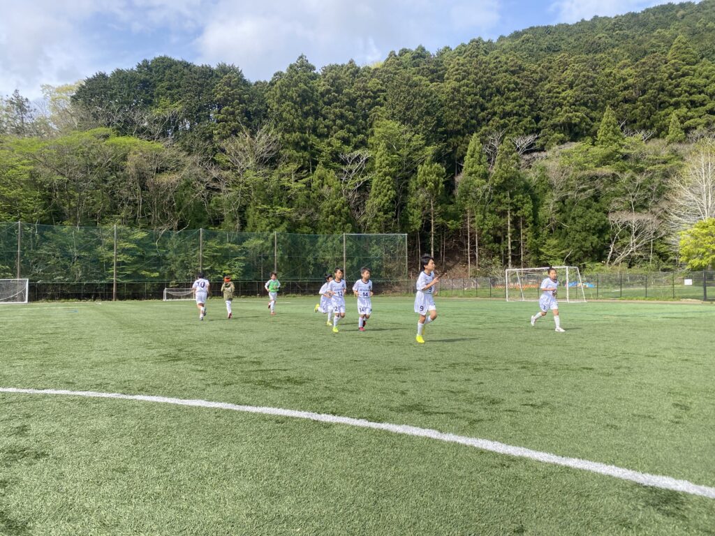 U-11スーパーリーグの日。約2時間のドライブ後に、到着後早速アップを開始。