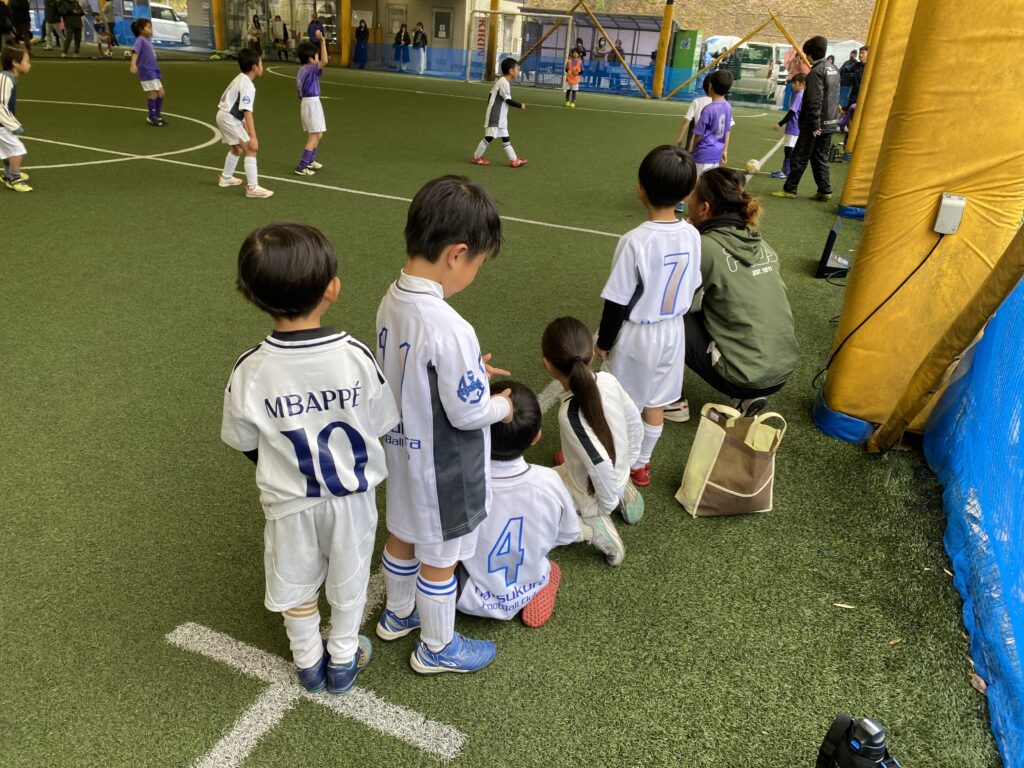 ↓試合前の指示を真剣に聞くちびっこ戦士たち。