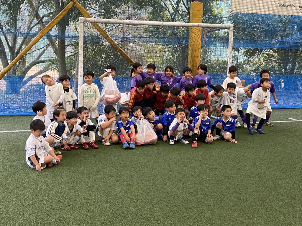 今日は1年生と年長さんが楽しみにしていたX’masイベントのフットサル大会。