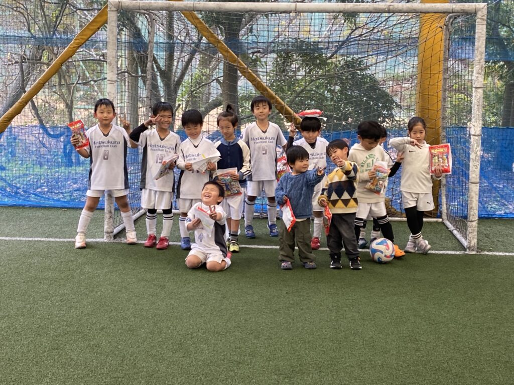 閉会式。サンタさん!?からお菓子をもらえて最高な1日でした。     全員で記念撮影しました。 最後は初倉FCだけで記念撮影。   大会主催者さま